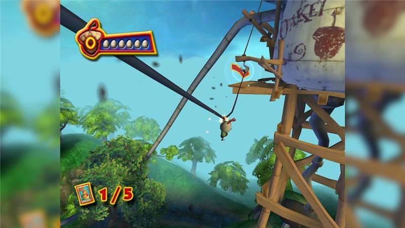 Based on Walt Disney’s feature 3D animation film Chicken Little, Chicken Little the action-packed video game catapults you into the hair-raising adventures of the movie and beyond. Live the adventures of Chicken Little and his friends, including Fish out of Water, Abby Mallard and Runt of the Litter. It takes more than cool moves to complete each mission. Rocket jet packs, slingshots and catapults get you out of sticky situations like alien invasions, spaceship piloting and antigravity challenges. Saving the day takes an arsenal of gadgets, friends and hero power!
