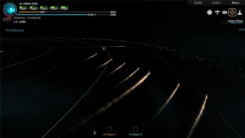 ● Use your artillery constructions to aim across the planetary system, avoiding other celestial bodies and their gravity.