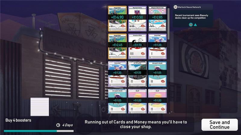 You are Harry Hsu, a young man who recently inherited a card shop from his father, a former champion of the famous card game "Warlock." With the shop’s reputation on the line, you start working behind the counter, juggling the locals' requests while trying to familiarize yourself with owning a shop.