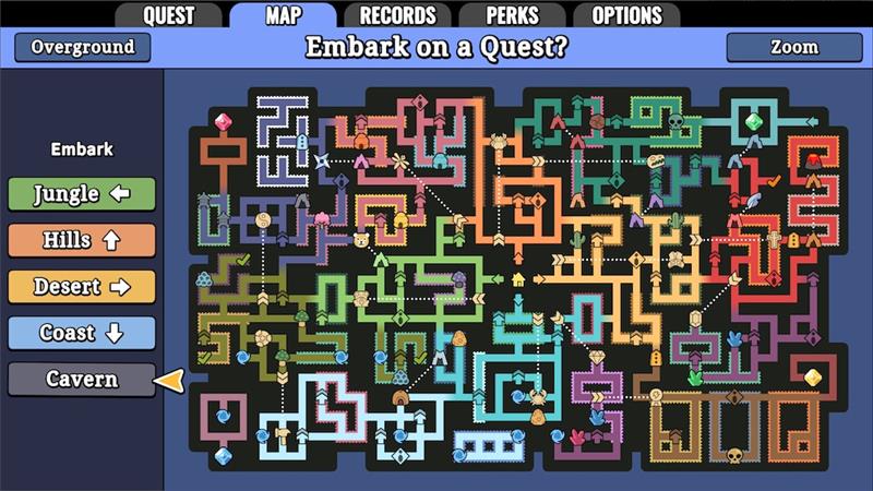 Deep within a forgotten jungle labyrinth, a Lasso is all that stands between you and vicious monsters! Taking inspiration from roguelikes, metroidvanias and monster taming games – Patch Quest is a deceptively difficult genre-defying whirlwind that will lasso you in with its fast-paced gameplay and keep you coming back to expand your monster collection. Do you have the skills to carve a path through this island’s shuffling, patchwork maze?