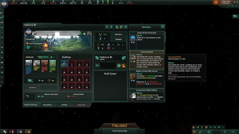 The developers decided to implement an interesting crisis mechanics. In the later phase of the game, each race will have to face some kind of devastating event that will diametrally change a number of elements and can be the cause of extinction for many races.