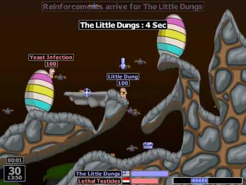 The Worms series is known for its ridiculous arsenal of weapons. In Armageddon, the player can use a variety of launchers, cannons, bombs, grenades, etc., to lay waste to the enemy ranks. More bizarre types of weapons include sheep, which explode upon contact with the enemy, skunks, deploying poisonous gas. The teams can also carry a special weapon that deals more substantial damage to the opponent. These can be anything from an airstrike made of sheep to Monty Python-inspired Holy Hand Grenade, which eliminates the enemy team to the sound of the angelic chorus.